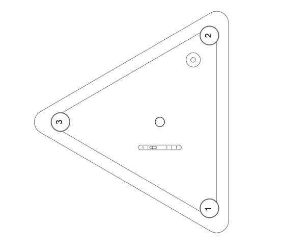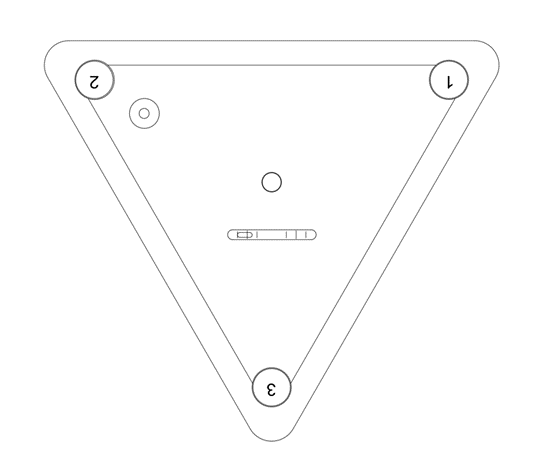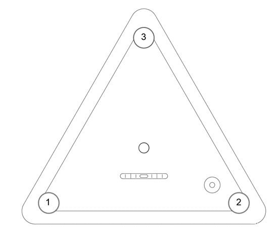 3.将光学对中基座放在脚架顶面中心使基座的三条边与脚架顶面的三条边平行且居中,拧紧基座与脚架的连接螺旋。