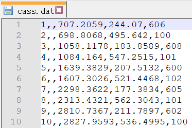2.数据准备:斜坡底面和顶面的坐标高程Excel文件;南方CASS需生成*.dat格式(点号,编码,坐标Y,坐标X,高程Z)。