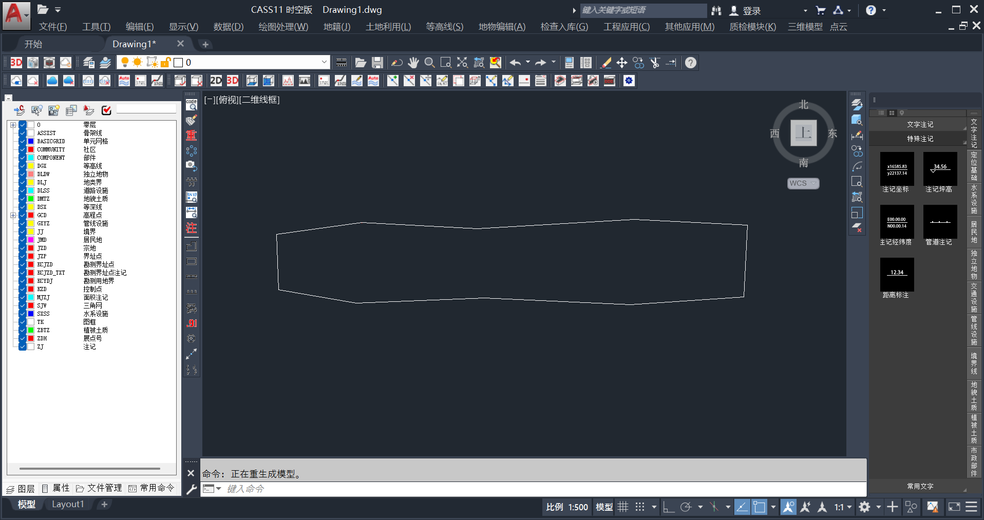 2.在弹出的对话框中,选择坐标文件(如cass.dat),点击打开。此时,所有高程点将显示在图形窗口中。检查点位是否完整、有无明显异常点。