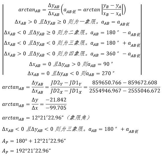 转向角α为曲线走向的交点转角,在设计没有明确告诉转角时可通过第二切线方位角Ap’和第一切线方位角Ap相减得出,负数为左转曲线、正数为右转曲线。