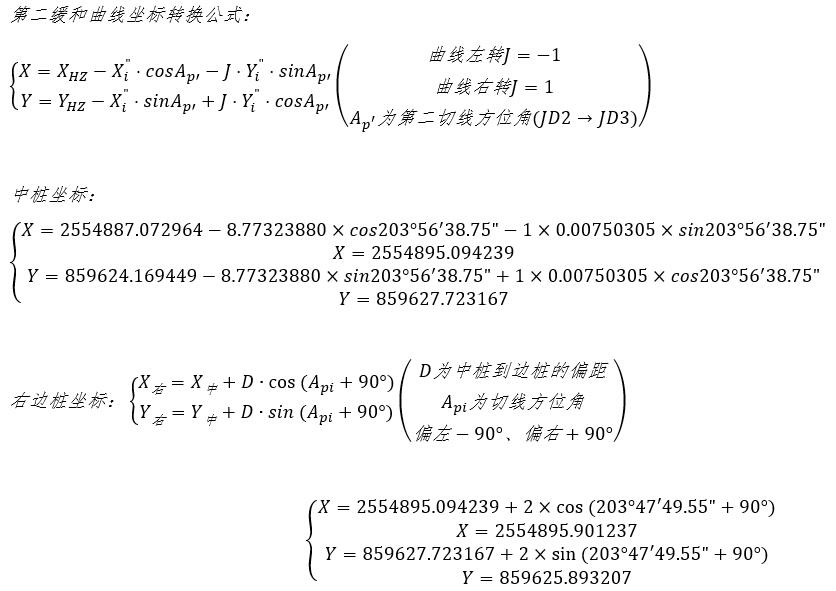 10、计算第二缓和曲线中桩、偏右2m边桩坐标DK8+440(